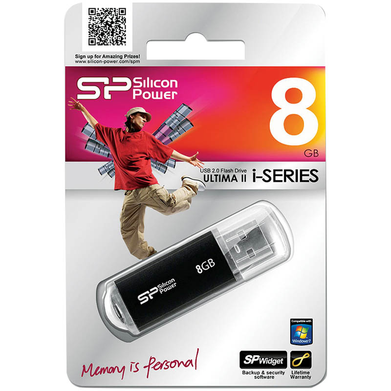 Память SiliconPower "Ultima II" 8GB, USB2.0 Flash Drive, черный (металл.корпус)
