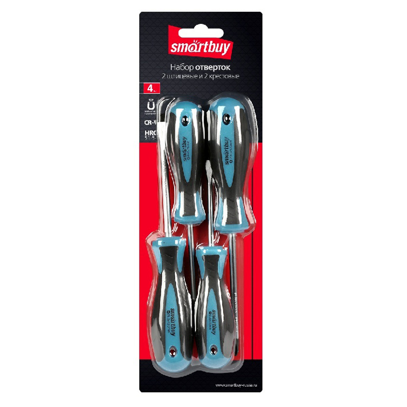 Набор отверток Smartbuy, 2 шлицевые, 2 крестовые, намагниченный наконечник, хром-ванадиевая сталь