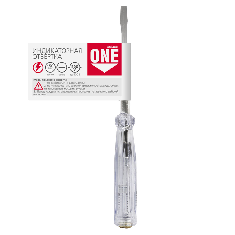 Отвертка индикаторная Smartbuy, 150мм, до 500В, шлицевая, белый