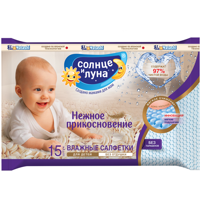 Салфетки влажные Солнце и луна "Нежное прикосновение", 15шт., детские