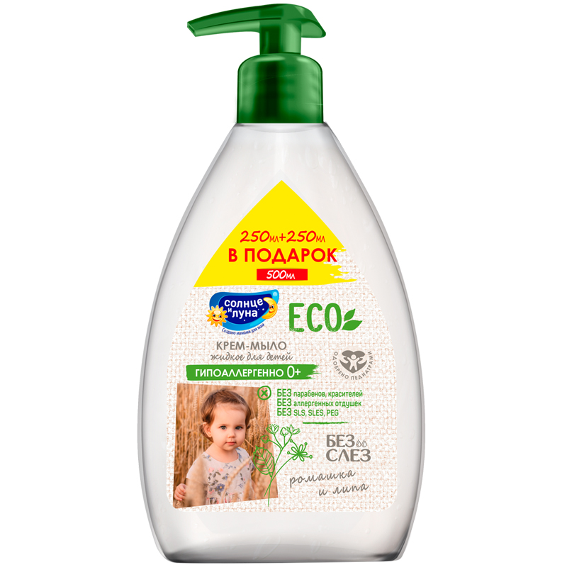 Мыло-крем жидкое Солнце и луна "Eco", ПРОМО 250мл+250мл Подарок, детское 0+, с дозатором