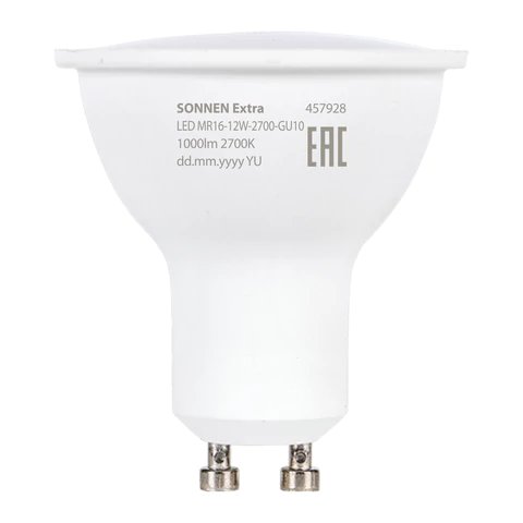 Лампа светодиодная SONNEN EXTRA, 12 (110) Вт, GU10, теплый белый, 30000 ч, LED MR16-GU10-12W-2700, 457928