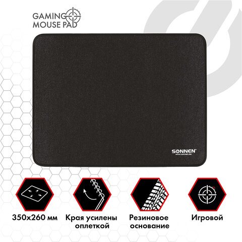 Коврик для мыши игровой SONNEN "ASSAULT", резина + ткань, 350х260х4 мм, 513303