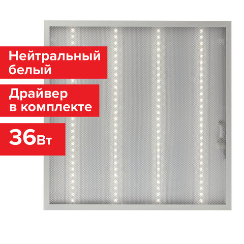 Светильник светодиодный с драйвером АРМСТРОНГ SONNEN ЭКО, 4000 K, нейтральный белый, 595х595х19 мм, 36 Вт, прозрачный, 237152