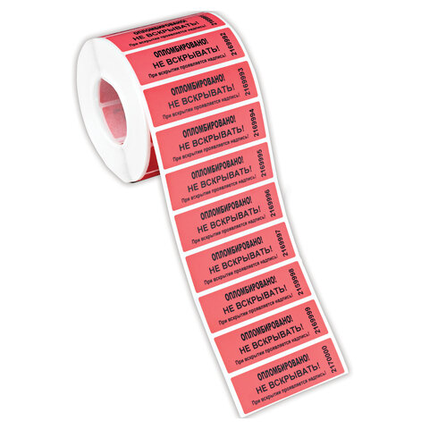 Пломбы самоклеящиеся номерные, комплект 1000 шт. (рулон), длина 66 мм, ширина 22 мм, красные, 600515