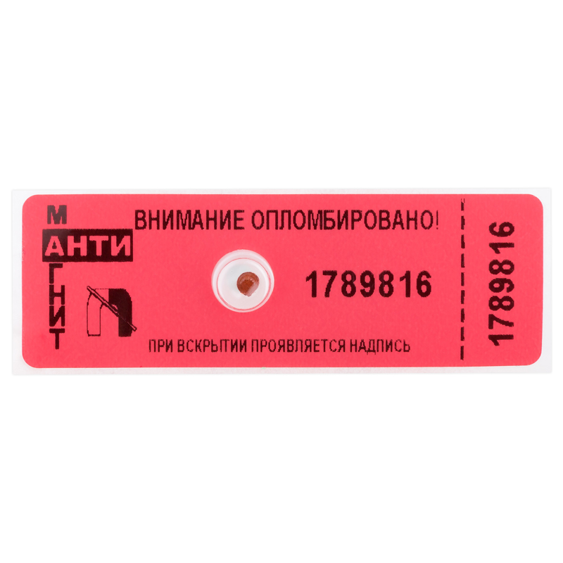 Пломбы самоклеящиеся номерные "АНТИМАГНИТ", для счетчиков, комплект 100 шт., 66 мм х 22 мм, красные, 602476