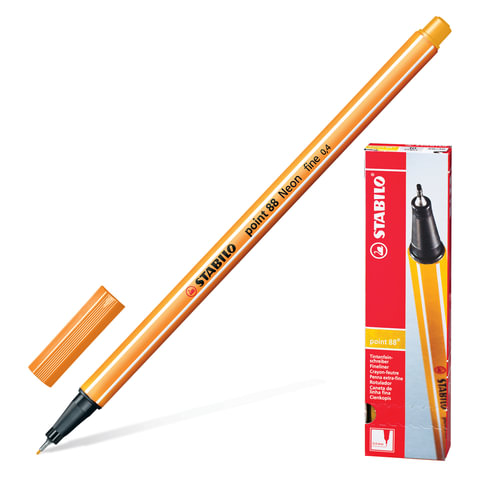 Ручка капиллярная (линер) STABILO "Point 88", НЕНОВАЯ ЖЕЛТАЯ, корпус оранжевый, линия письма 0,4 мм, 88/024