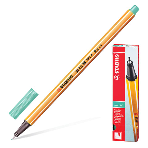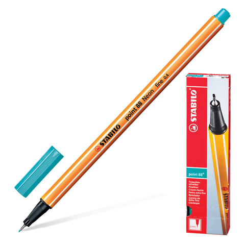Ручка капиллярная (линер) STABILO "Point 88", ЗЕЛЕНОВАТО-БИРЮЗОВАЯ, корпус оранжевый, линия письма 0,4 мм, 88/53