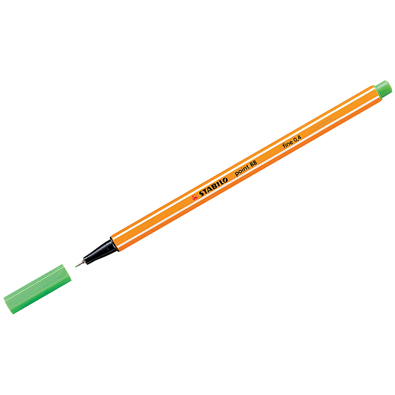 Ручка капиллярная (линер) STABILO "Point 88", СВЕТЛО-ЗЕЛЕНАЯ, корпус оранжевый, линия письма 0,4 мм, 88/33