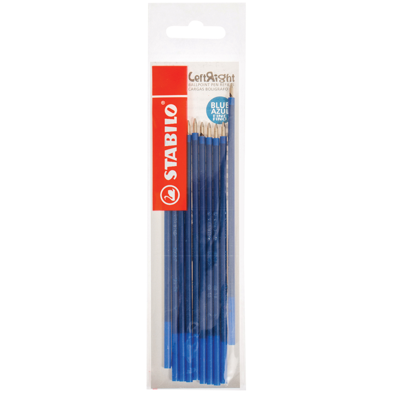 Стержни шариковые STABILO, НАБОР 10 шт., "LeftRight", 135 мм, СИНИЕ, узел 0,8 мм, линия письма 0,4 мм, 6308/10-41
