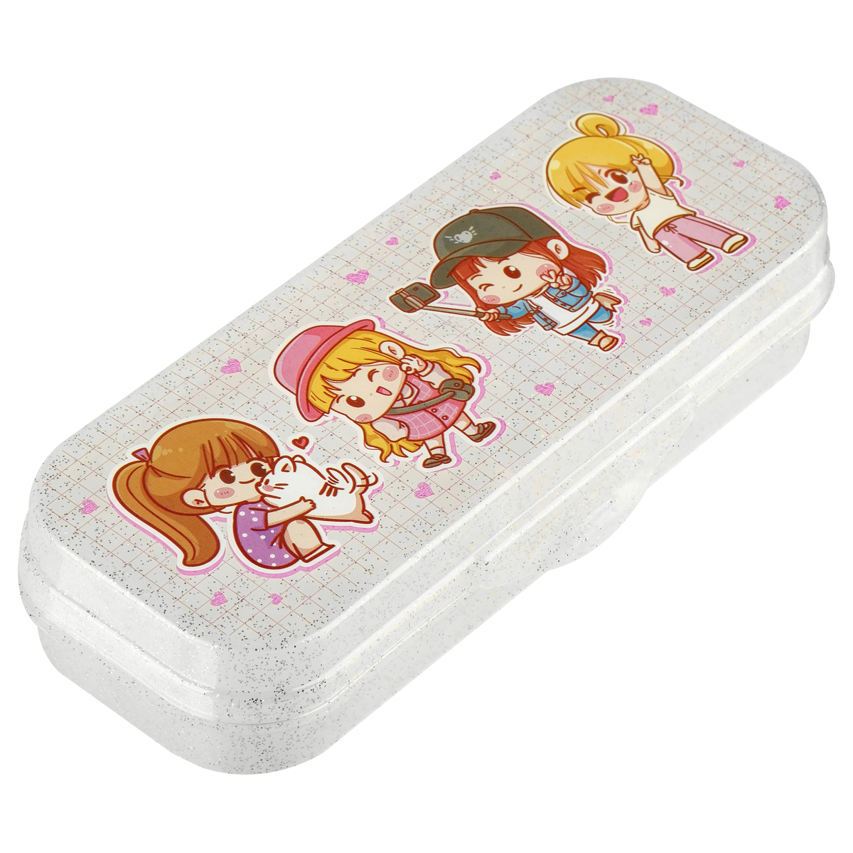 Пенал-футляр, 215*90*43 СТАММ "Подружки", прозрачный с блестками