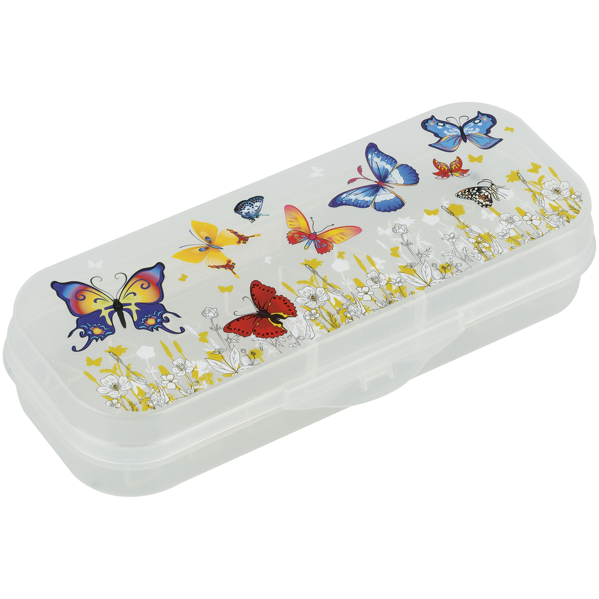 Пенал-футляр, 215*90*43 СТАММ "Бабочки", пластик, прозрачный