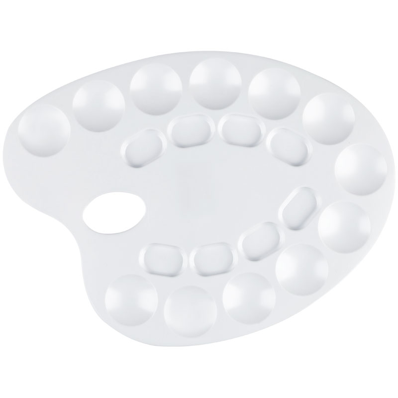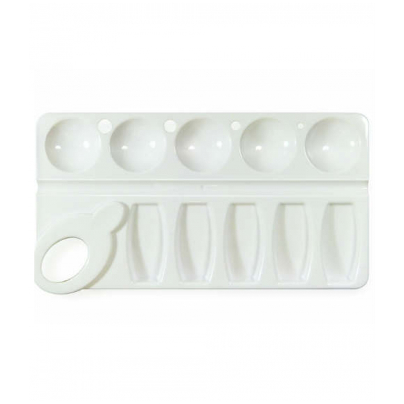 Палитра для рисования пластиковая, овальная, 6 отделений для красок и 4 отделения для смешивания, ПА01