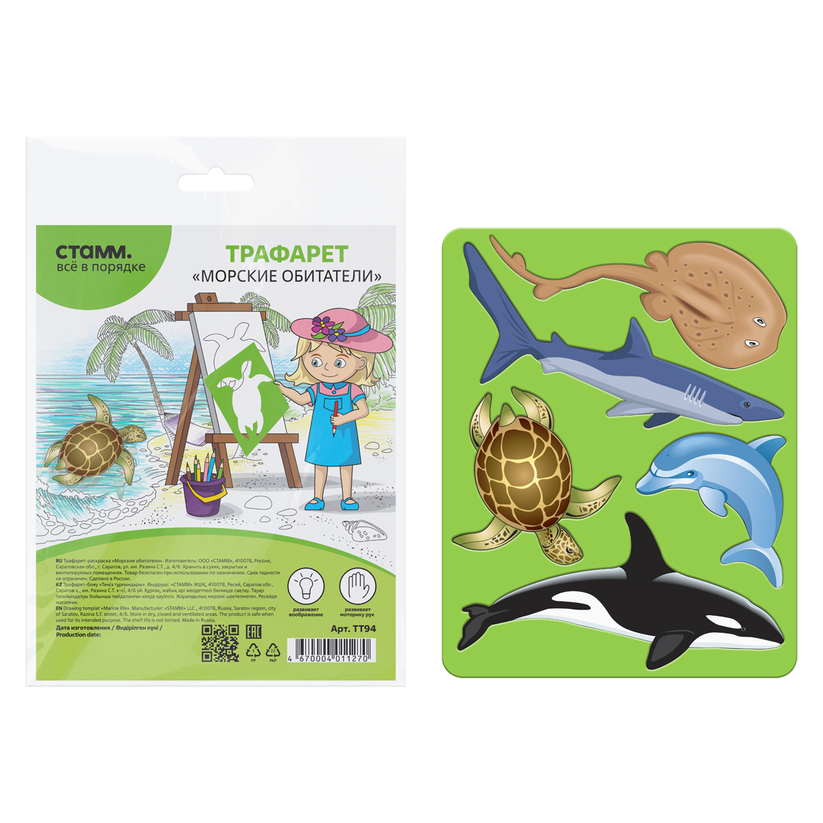 Трафарет-раскраска СТАММ "Морские обитатели", пакет, европодвес