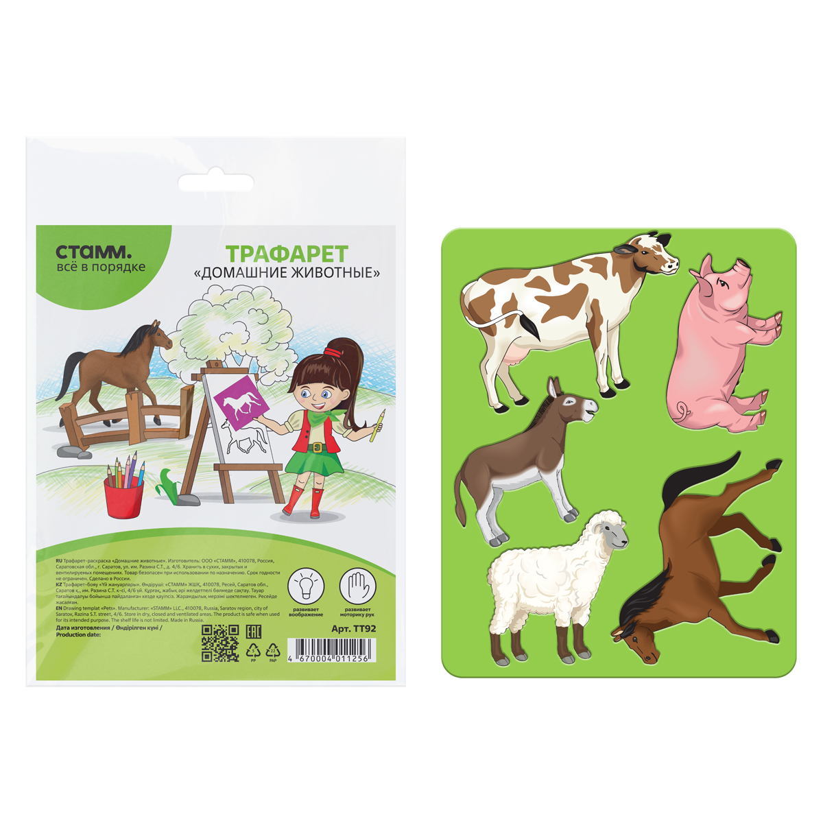 Трафарет-раскраска СТАММ "Домашние животные", пакет, европодвес