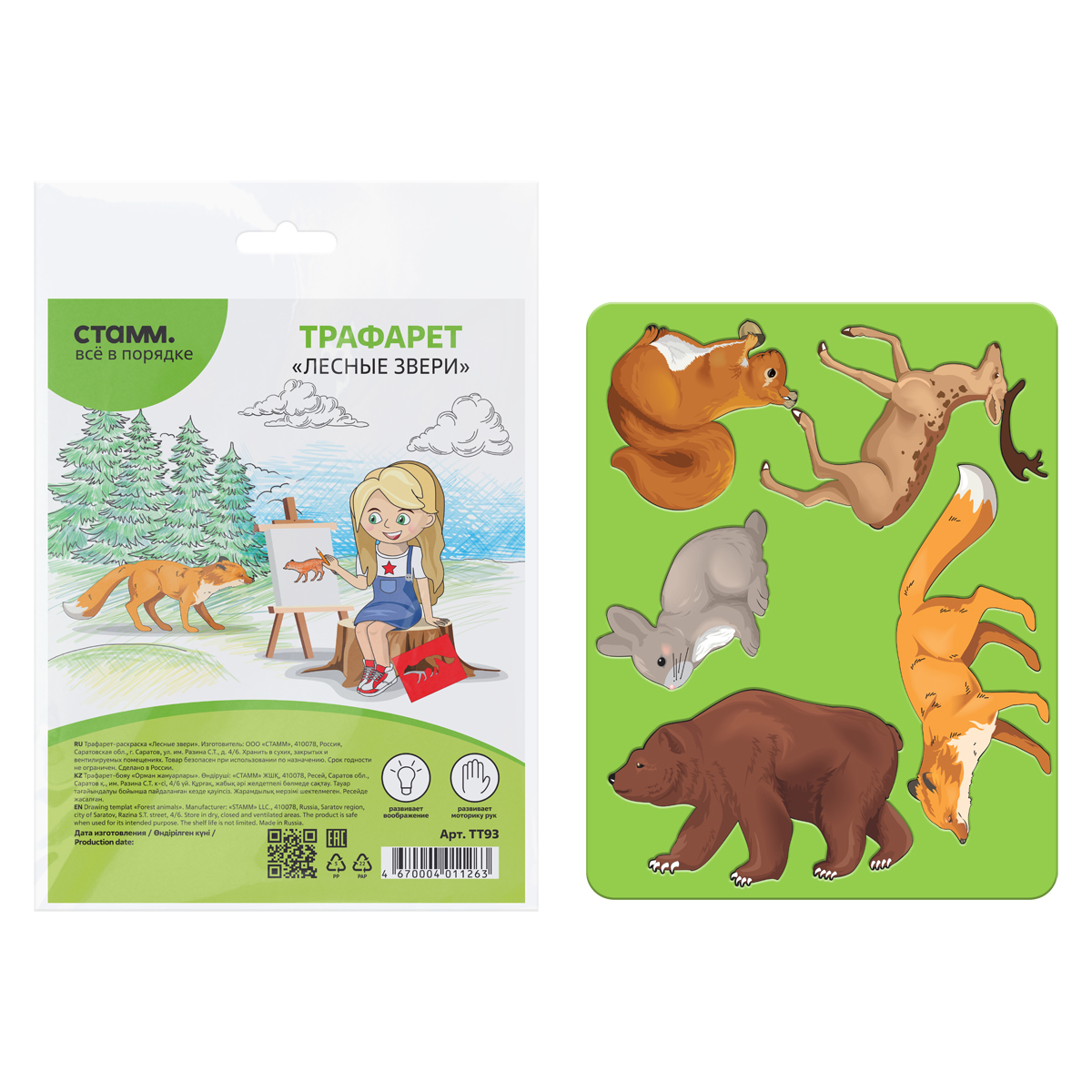 Трафарет-раскраска СТАММ "Лесные звери", пакет, европодвес