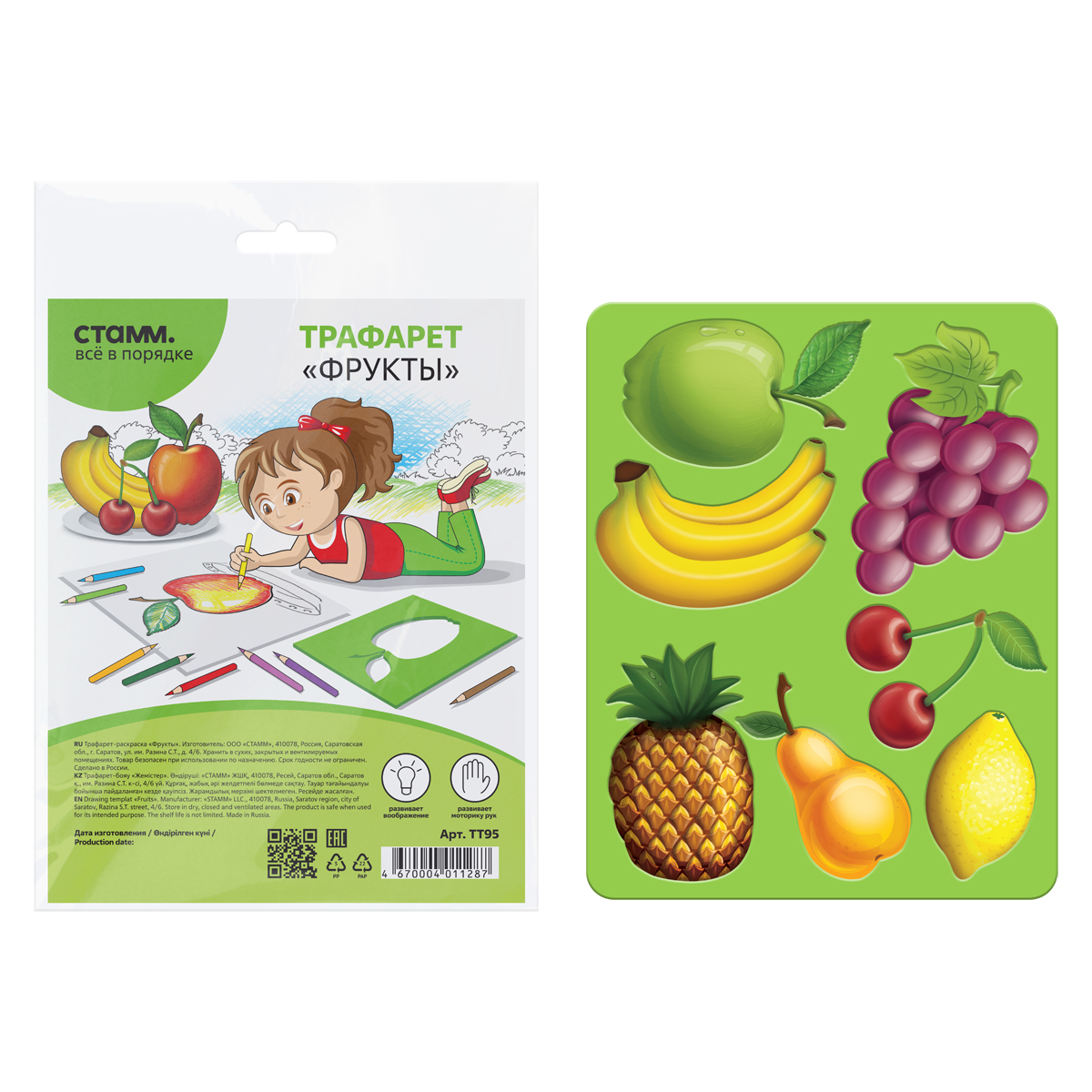 Трафарет-раскраска СТАММ "Фрукты", пакет, европодвес