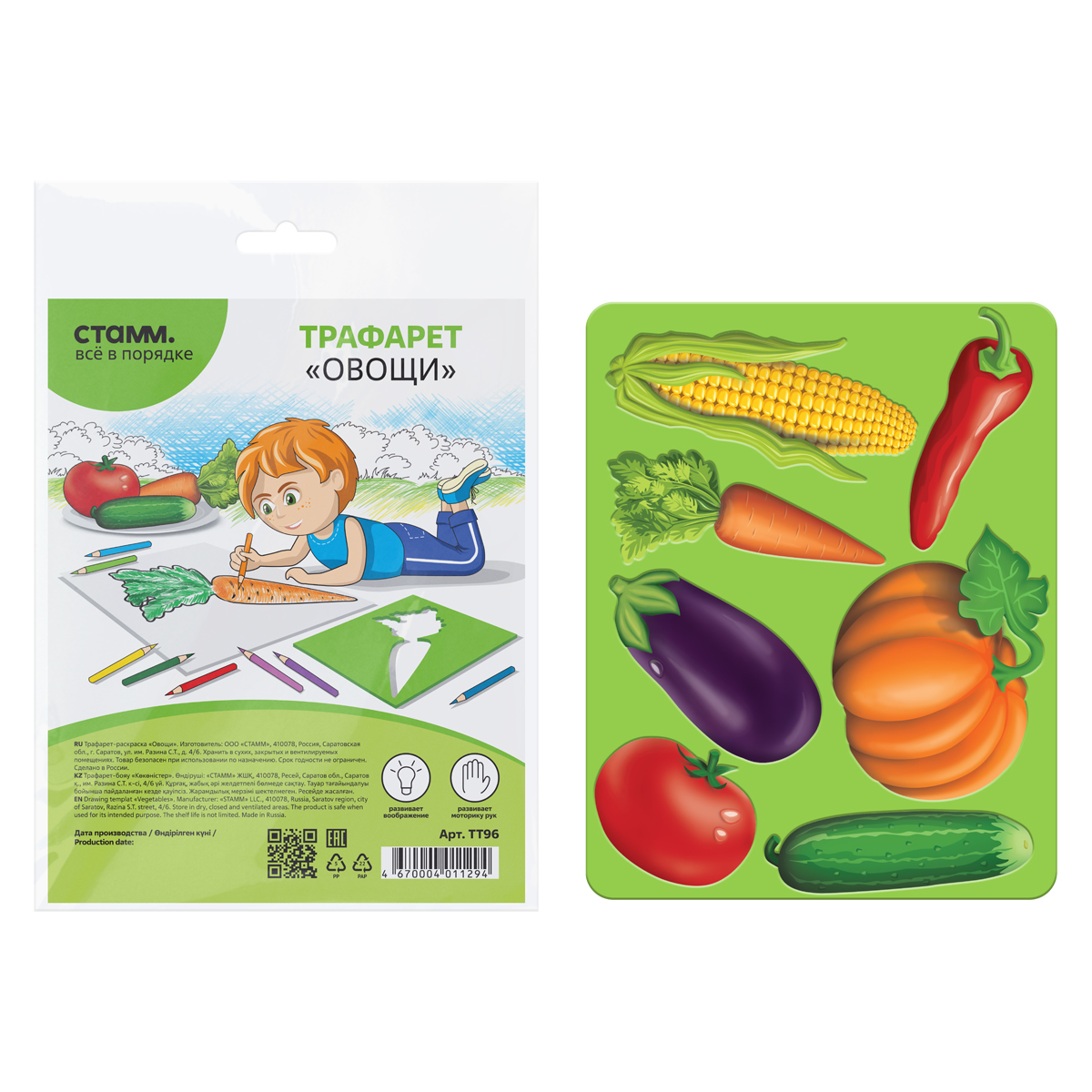 Трафарет-раскраска СТАММ "Овощи", пакет, европодвес