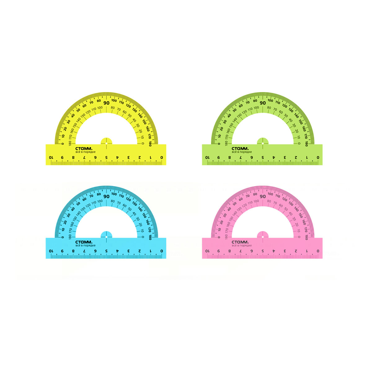 Транспортир 10см, 180° СТАММ, пластиковый, прозрачный, неоновые цвета, ассорти