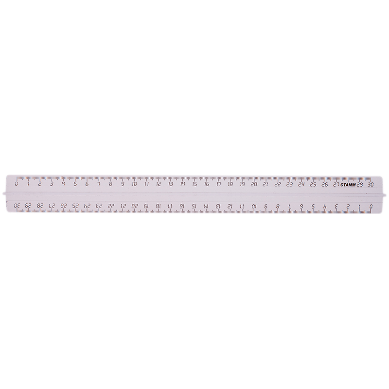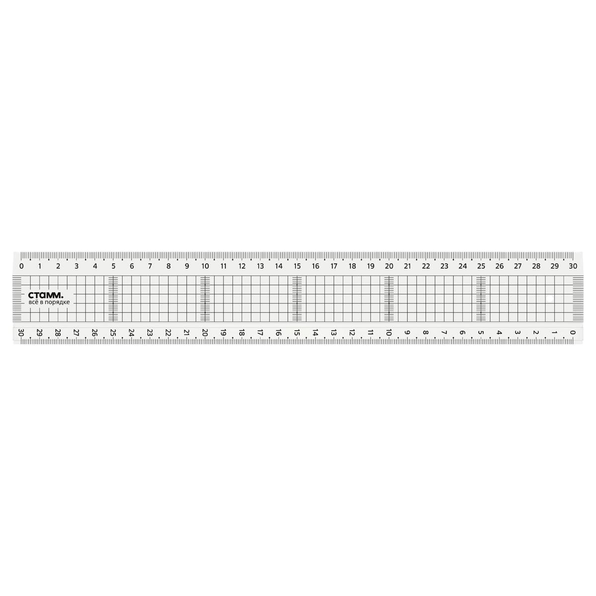 Линейка 30см СТАММ, пластиковая, прозрачная бесцветная, с держателем