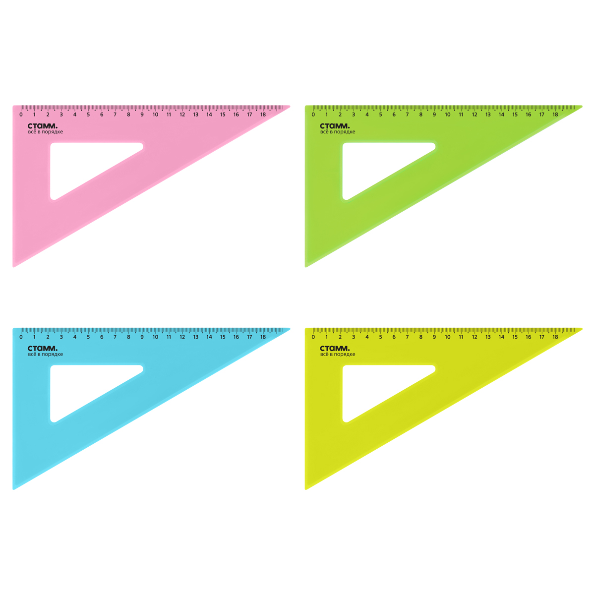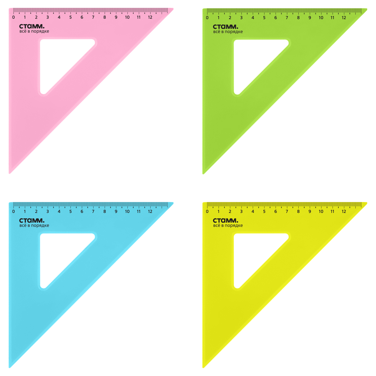 Треугольник 45°, 12см СТАММ, пластиковый, прозрачный, неоновые цвета, ассорти