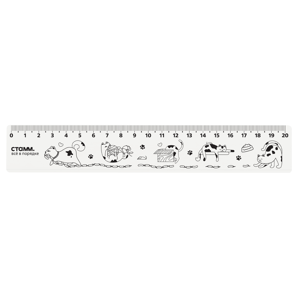 Линейка 20см СТАММ "Коты", пластиковая, широкая