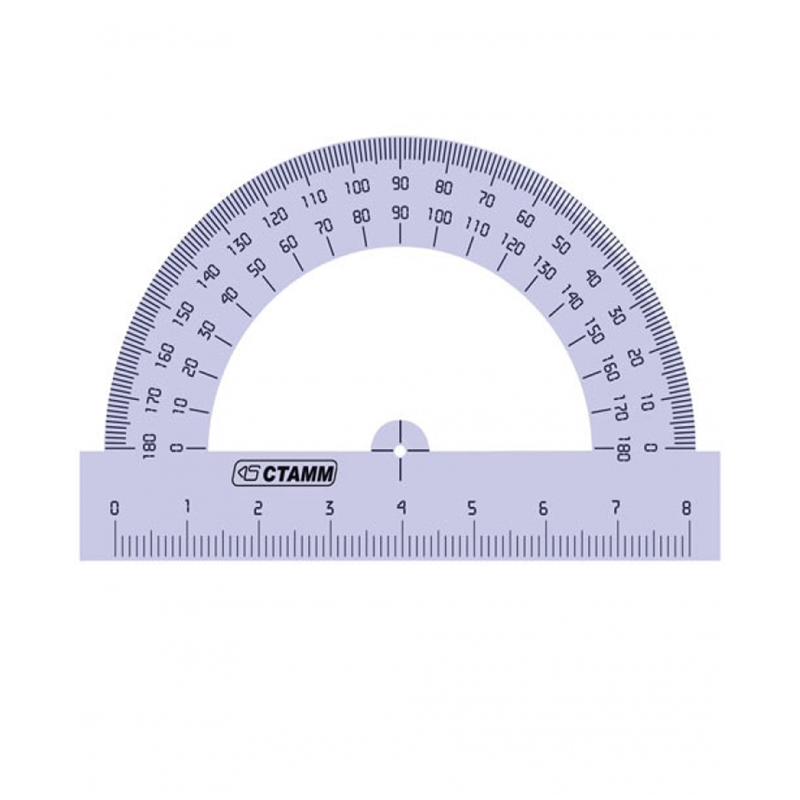 Транспортир 08см, 180° Стамм, прозрачный тонированный