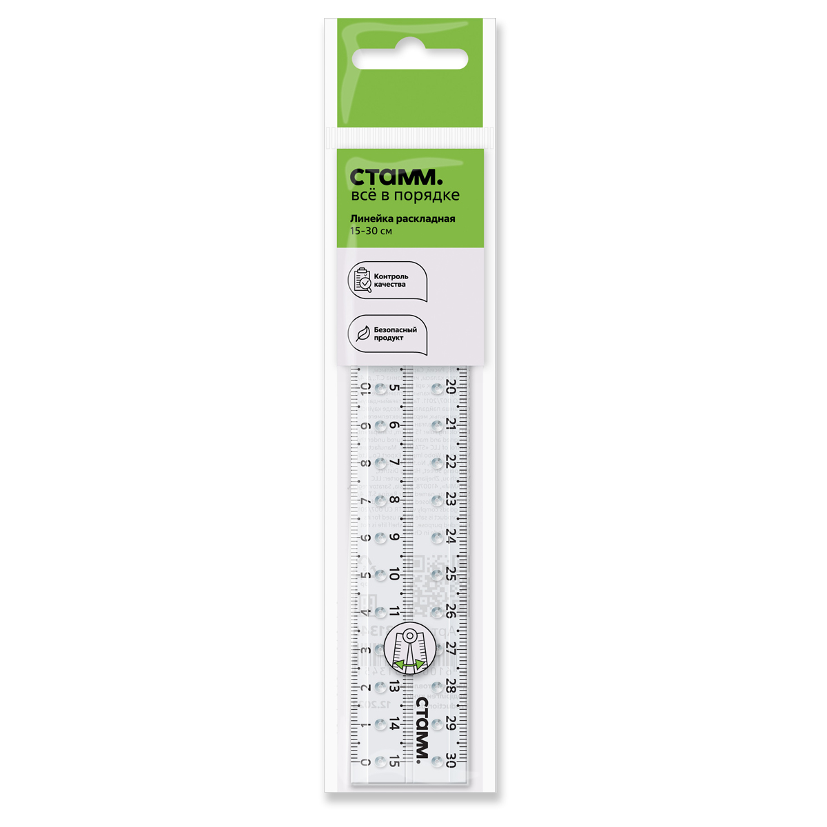Линейка раскладная 15-30см СТАММ, пластиковая, прозрачная, европодвес