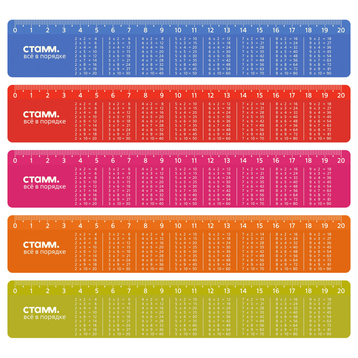 Линейка 20см СТАММ "Таблица умножения", со справочным материалом, пластиковая, перламутровая, ассорти