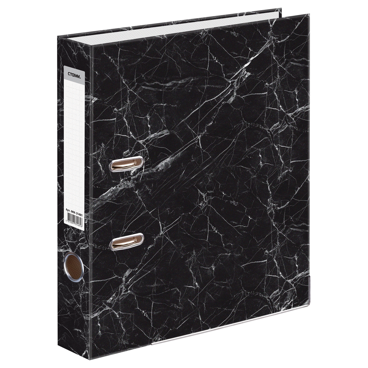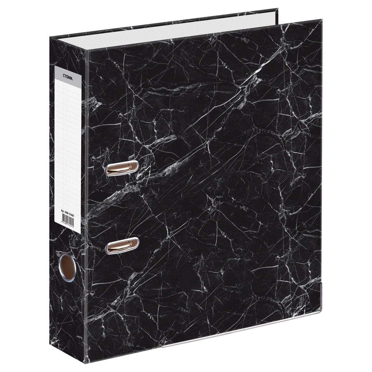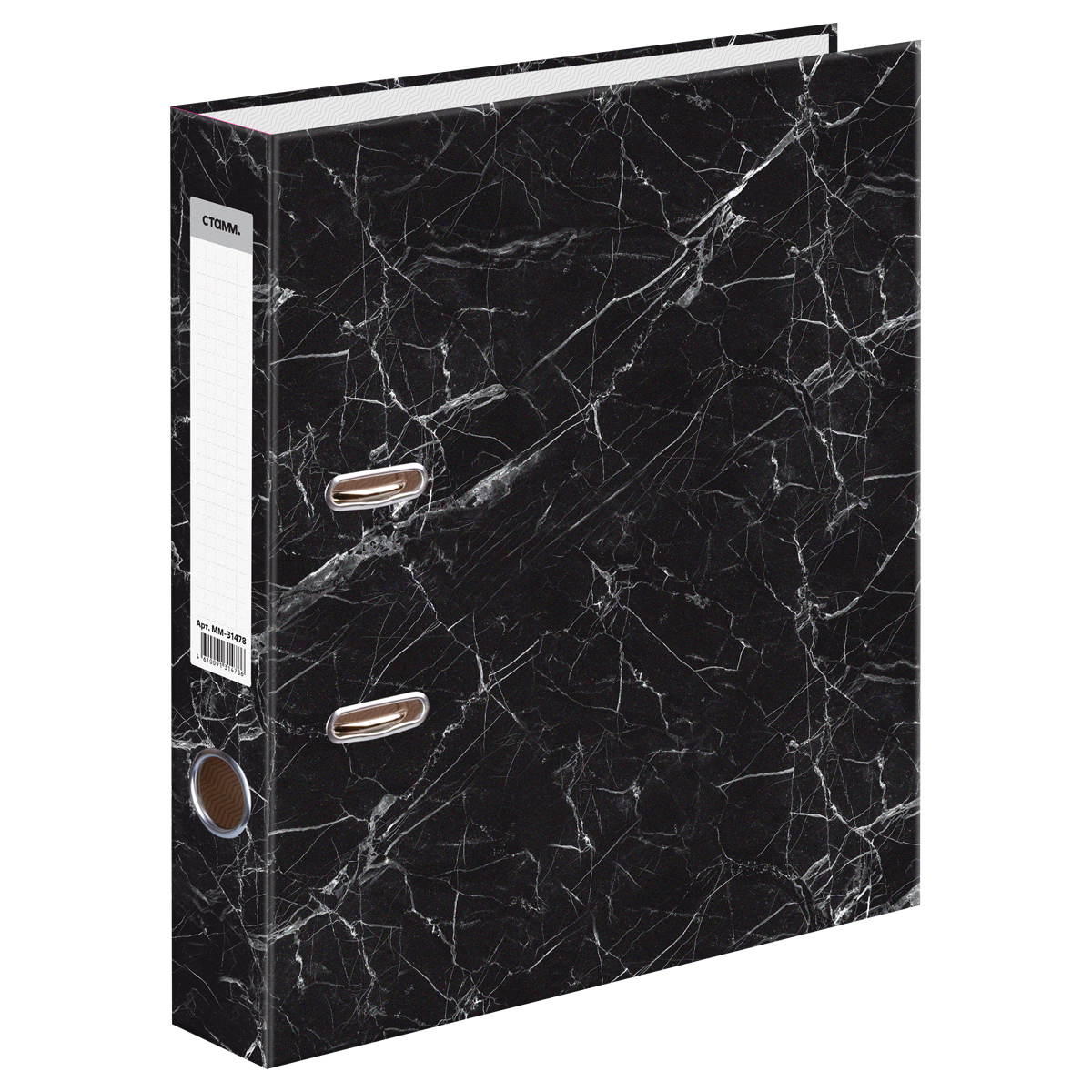 Папка-регистратор СТАММ, 80мм, мрамор, черная