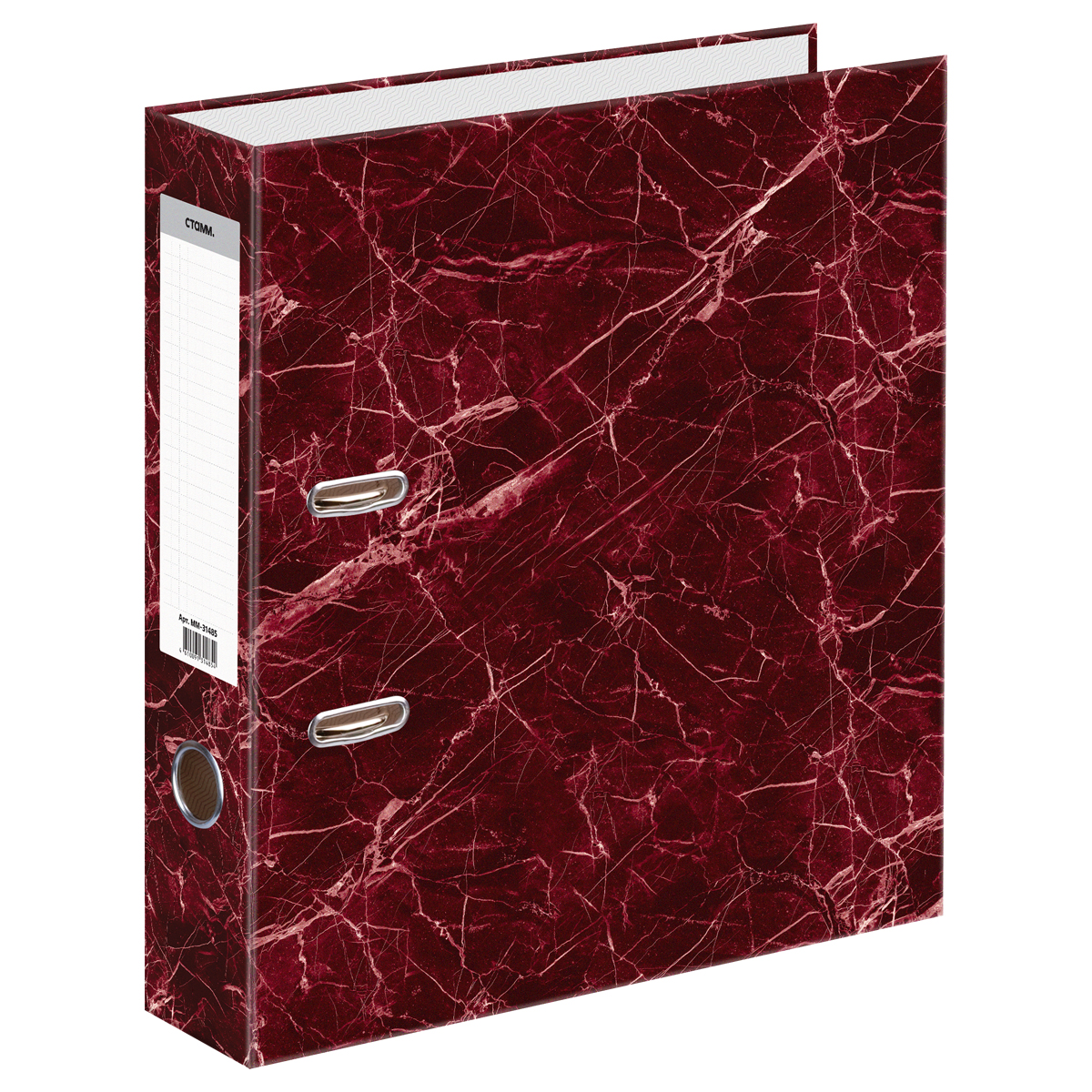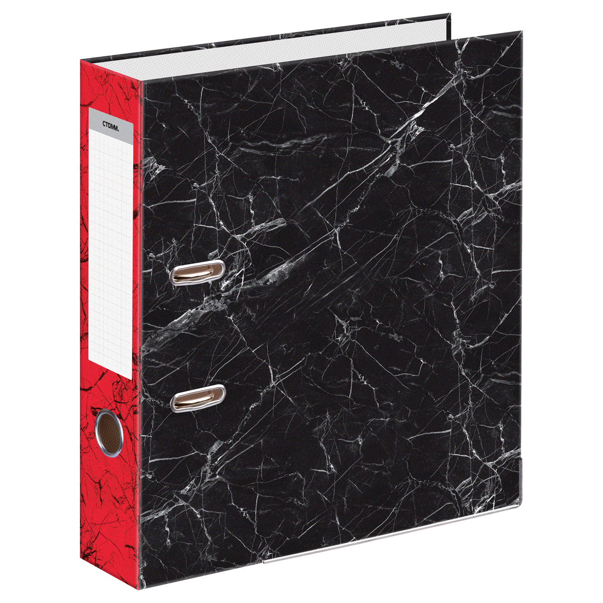 Папка-регистратор СТАММ, 70мм, мрамор, черная, красный корешок, нижний метал. кант