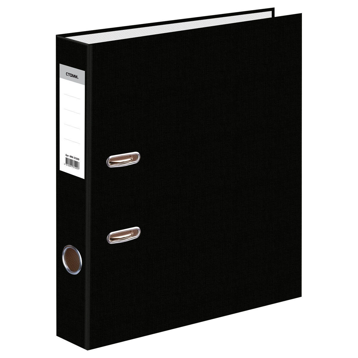 Папка-регистратор СТАММ, 50мм, мрамор, черная, нижний метал. кант