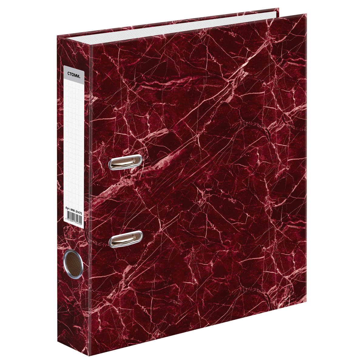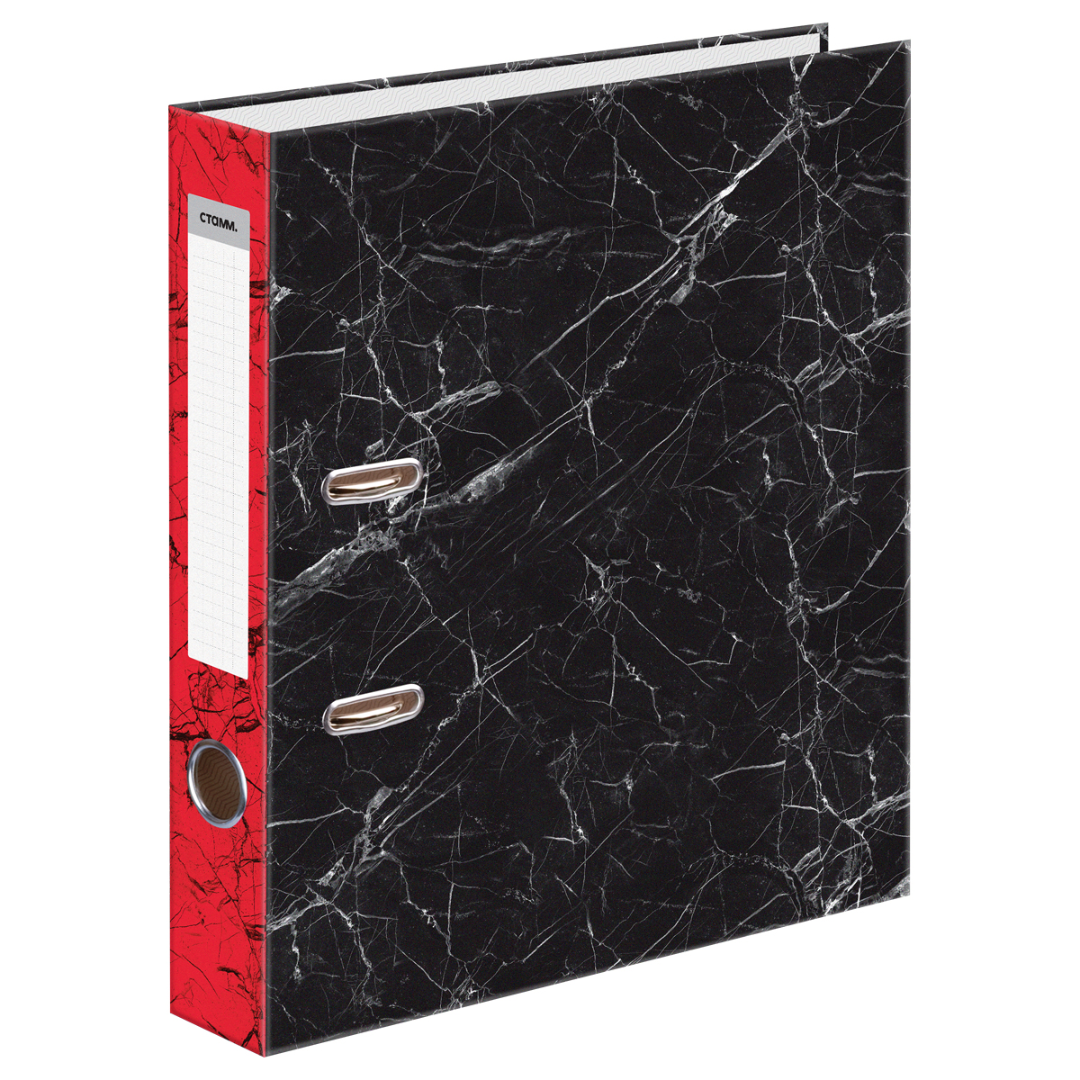 Папка-регистратор СТАММ, 50мм, мрамор, черная, красный корешок, нижний метал. кант