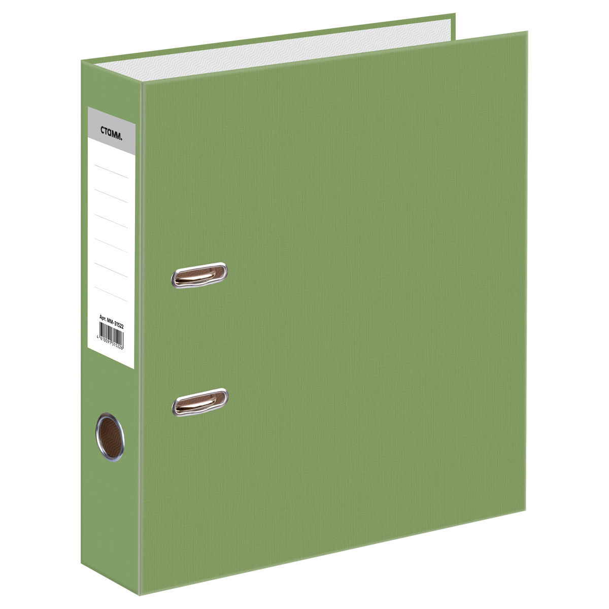 Папка-регистратор СТАММ, 70мм, бумвинил, с карманом на корешке, фисташковая