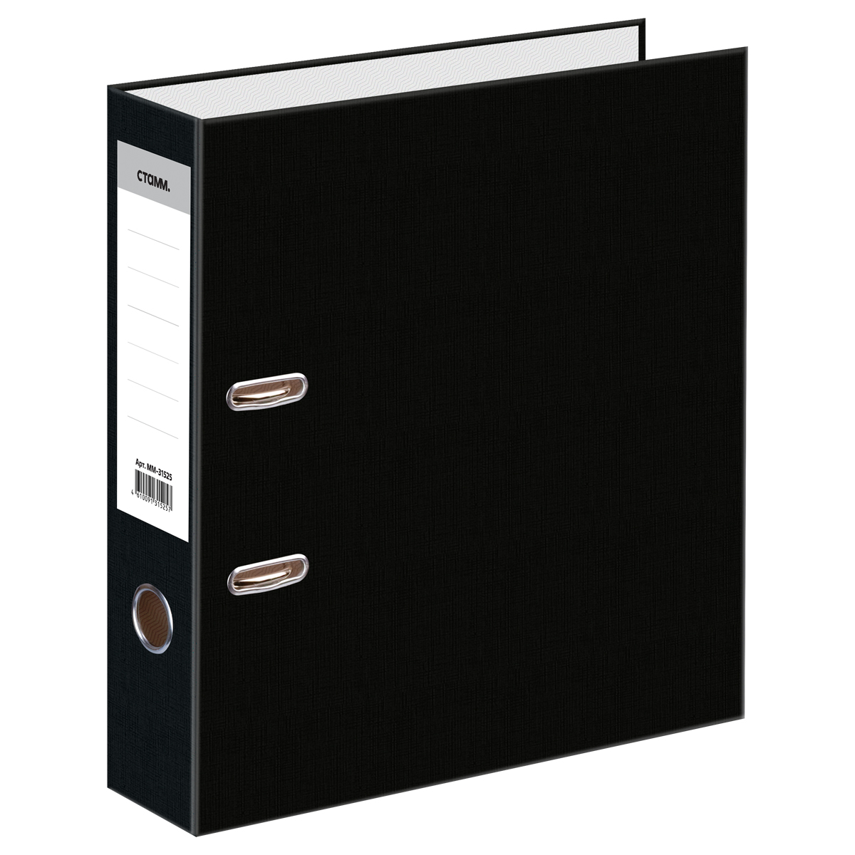 Папка-регистратор СТАММ, 70мм, мрамор, черная, нижний метал. кант