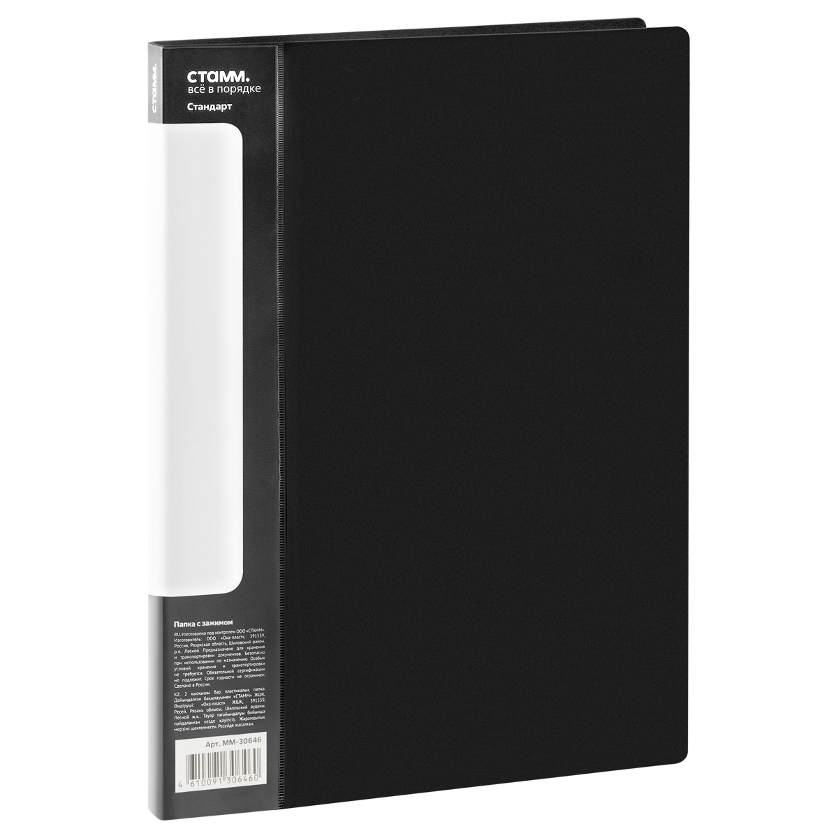 Папка с боковым зажимом СТАММ "Стандарт" А4, 17мм, 700мкм, пластик, черная