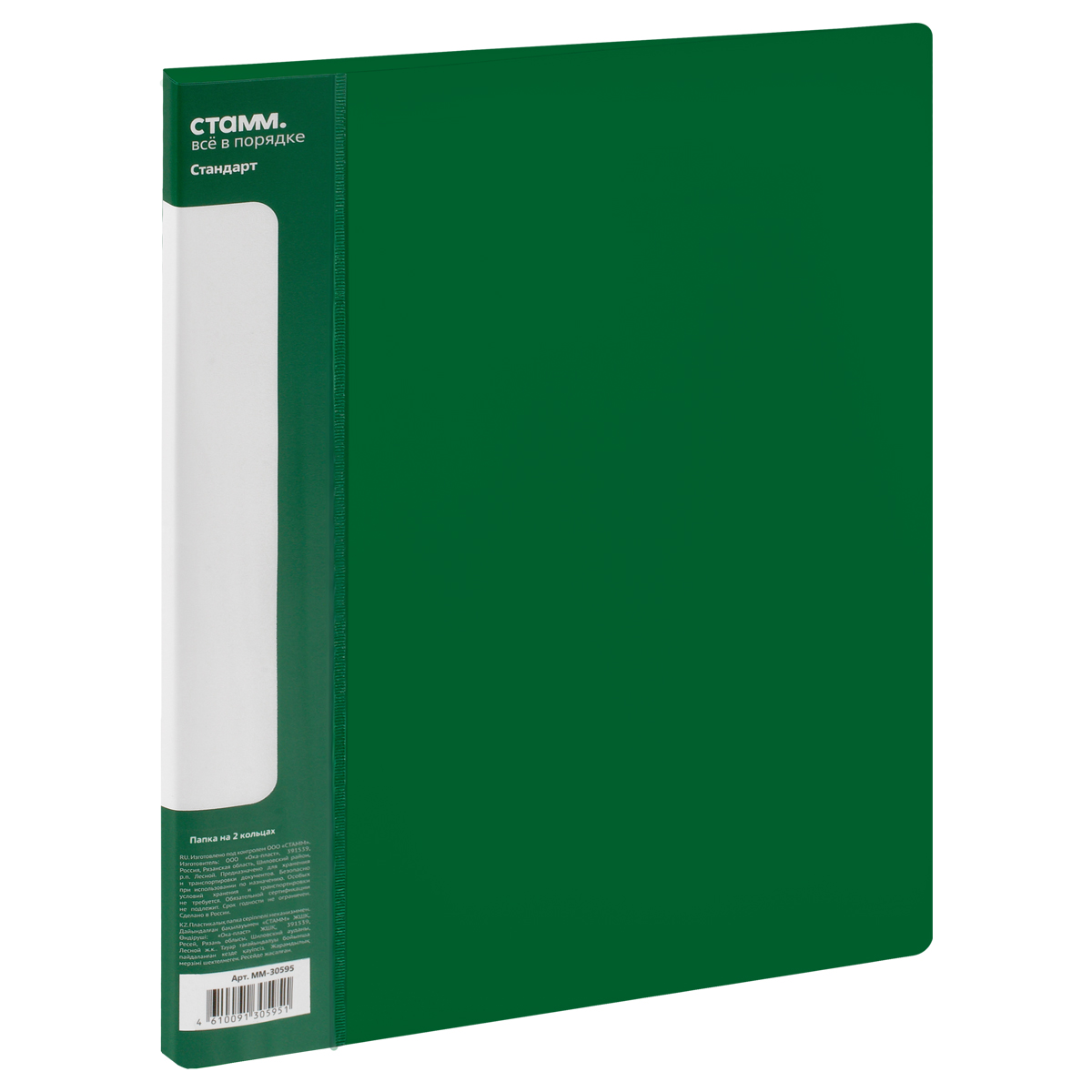 Папка на 2 кольцах СТАММ "Стандарт" А4, 25мм, 700мкм, пластик, зеленая