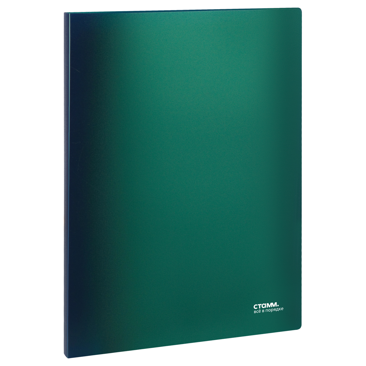 Папка на 4 кольцах СТАММ "Стандарт" А4, 40мм, 700мкм, пластик, зеленая