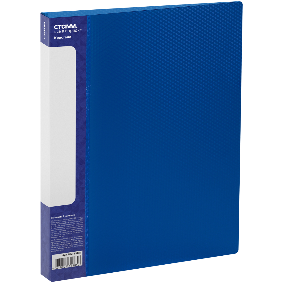Папка на 2 кольцах СТАММ "Кристалл" А4, 40мм, 700мкм, пластик, синяя