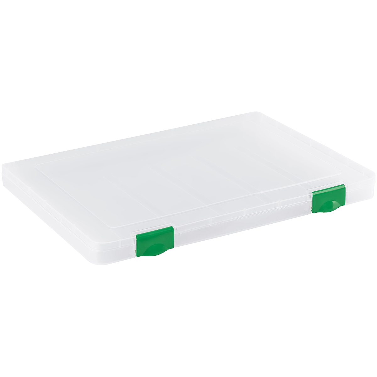 Папка для документов СТАММ А4, 235*310*40мм, пластик., прозрачная, зеленые защелки