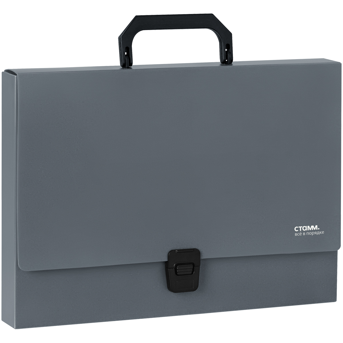Папка-портфель 1 отделение СТАММ "Стандарт" А4, 1000мкм, на замке, пластик, серая