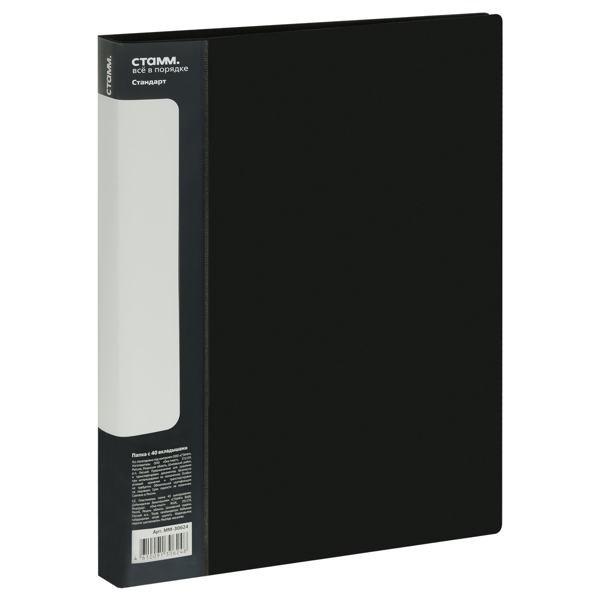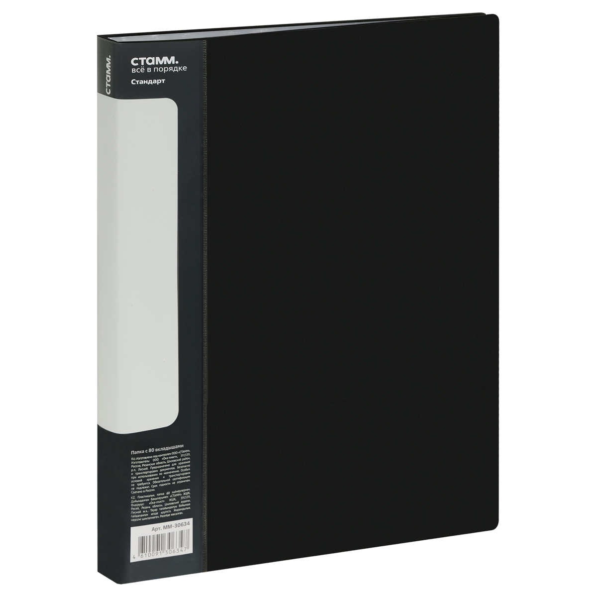 Папка с 80 вкладышами СТАММ "Стандарт" А4, 30мм, 800мкм, пластик, черная