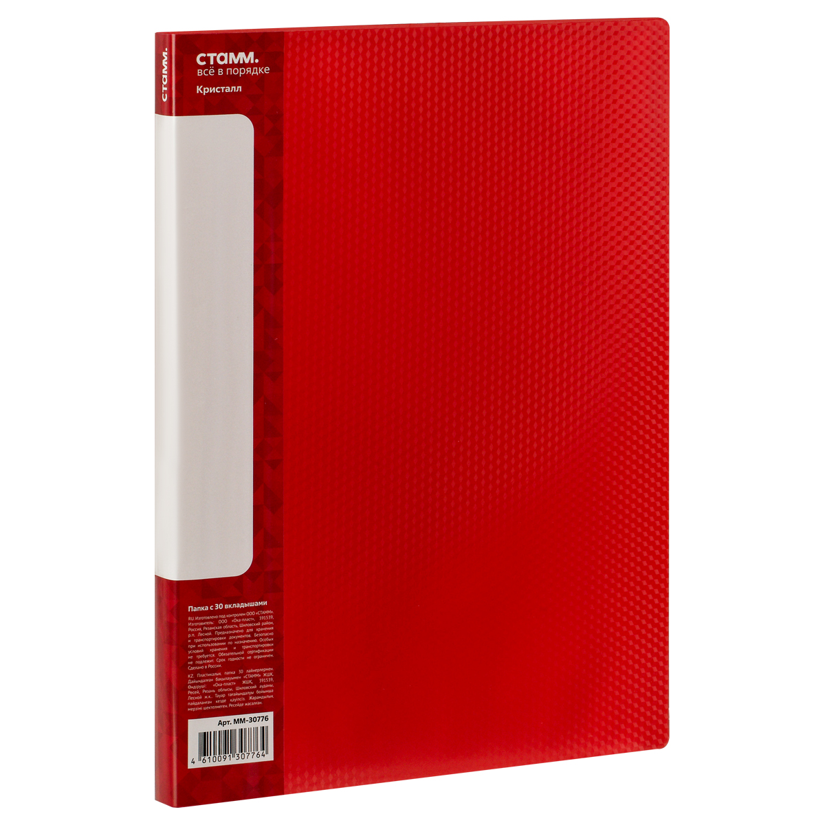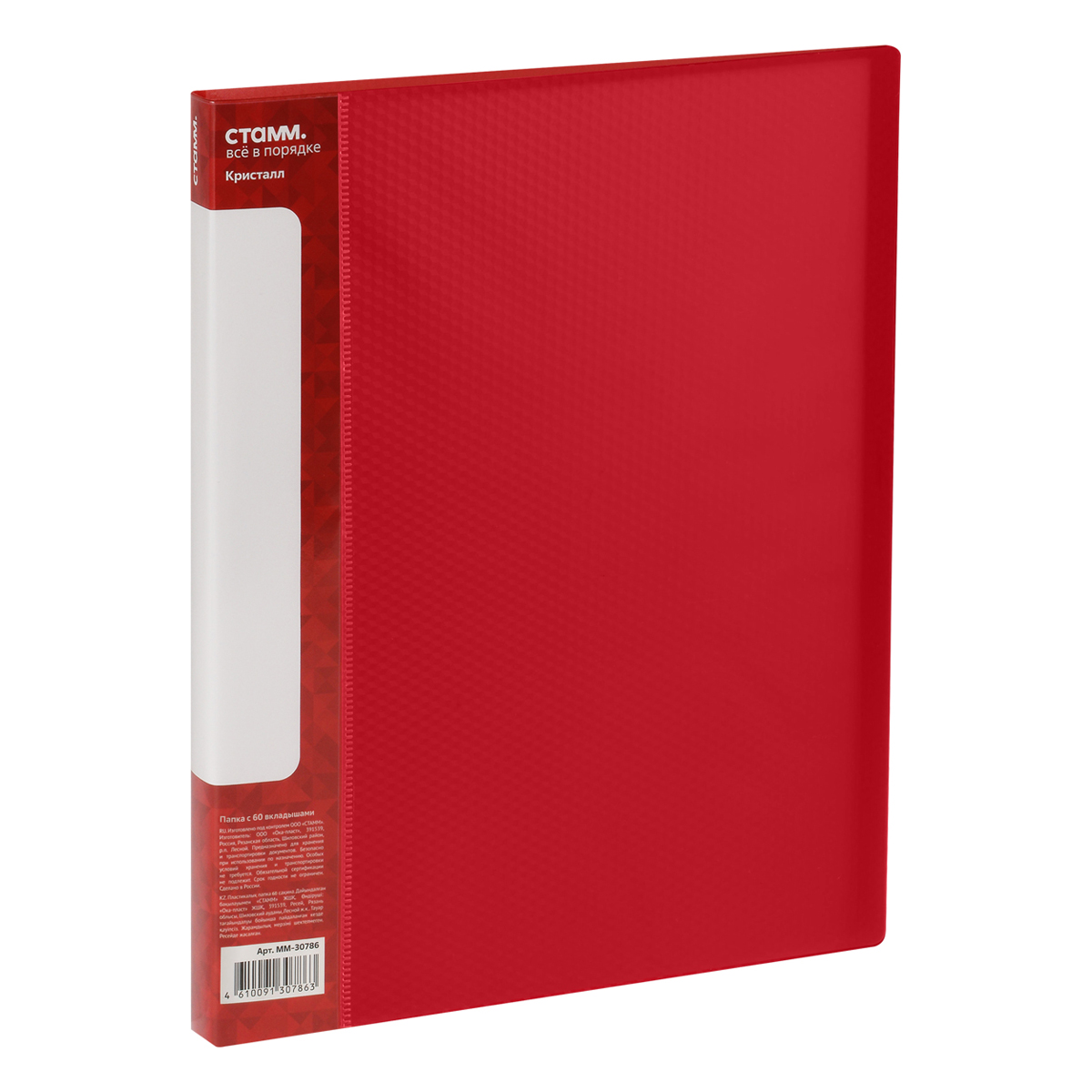 Папка с 30 вкладышами СТАММ "Кристалл" А4, 17мм, 700мкм, пластик, красная