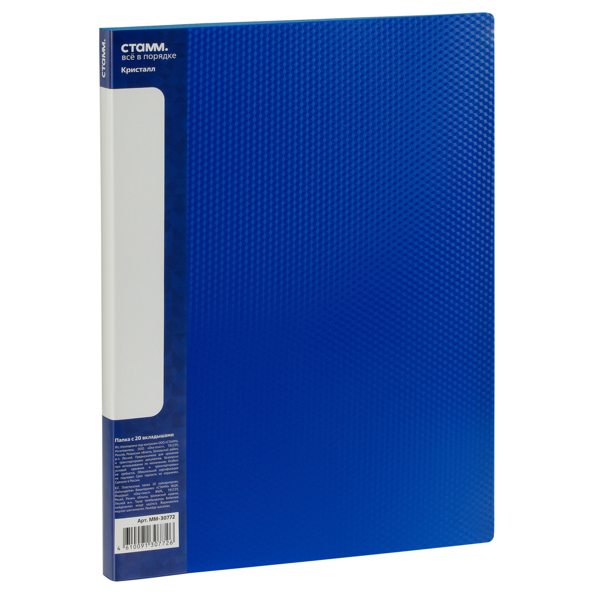 Папка с 20 вкладышами СТАММ "Кристалл" А4, 14мм, 700мкм, пластик, синяя