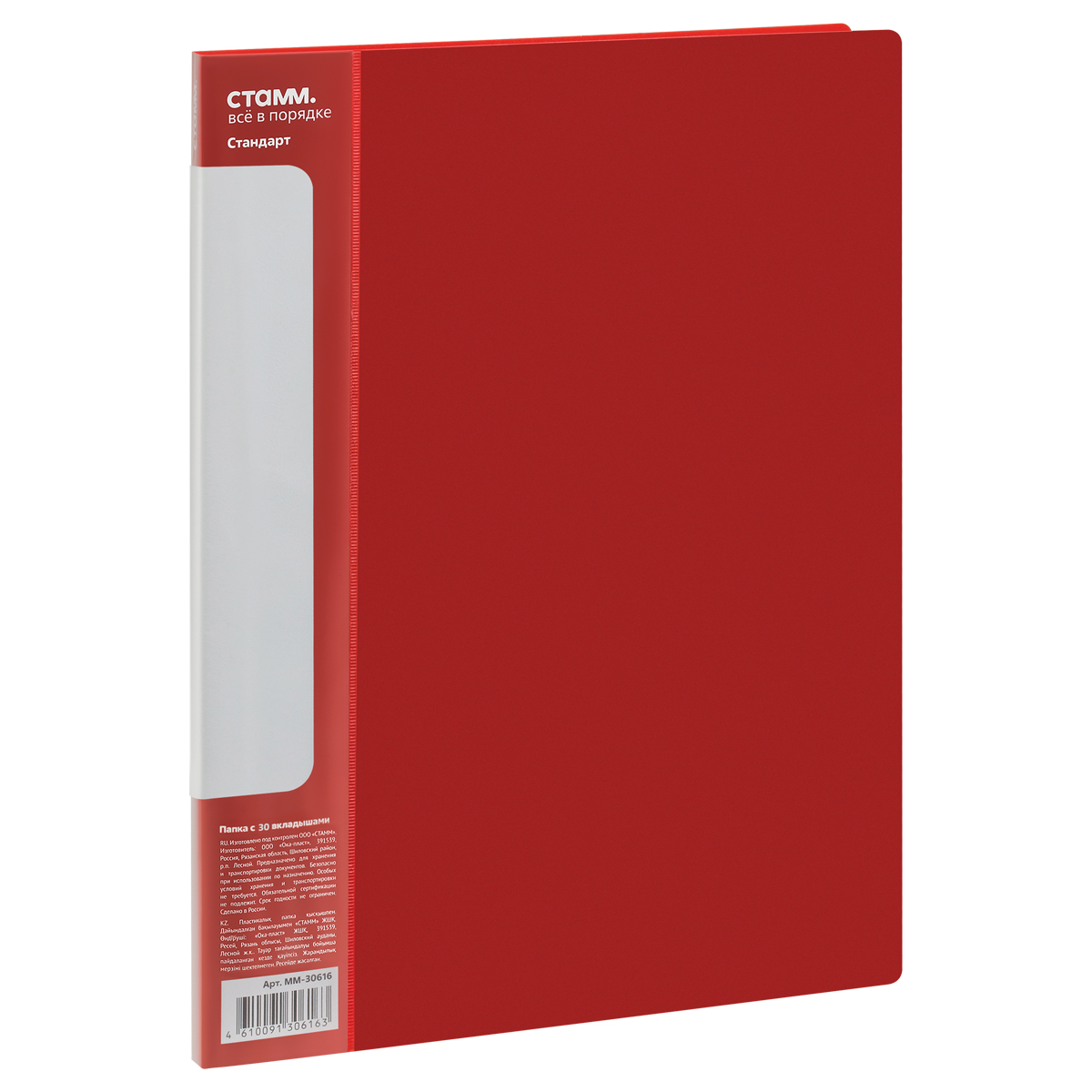 Папка с 30 вкладышами СТАММ "Стандарт" А4, 17мм, 600мкм, пластик, красная