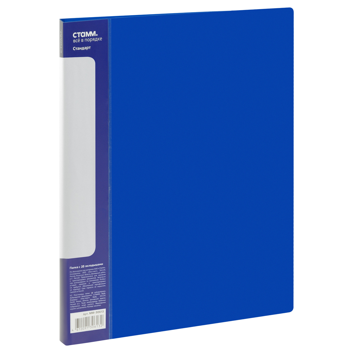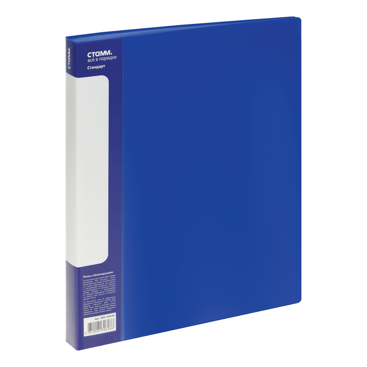 Папка с 60 вкладышами СТАММ "Стандарт" А4, 21мм, 700мкм, пластик, синяя