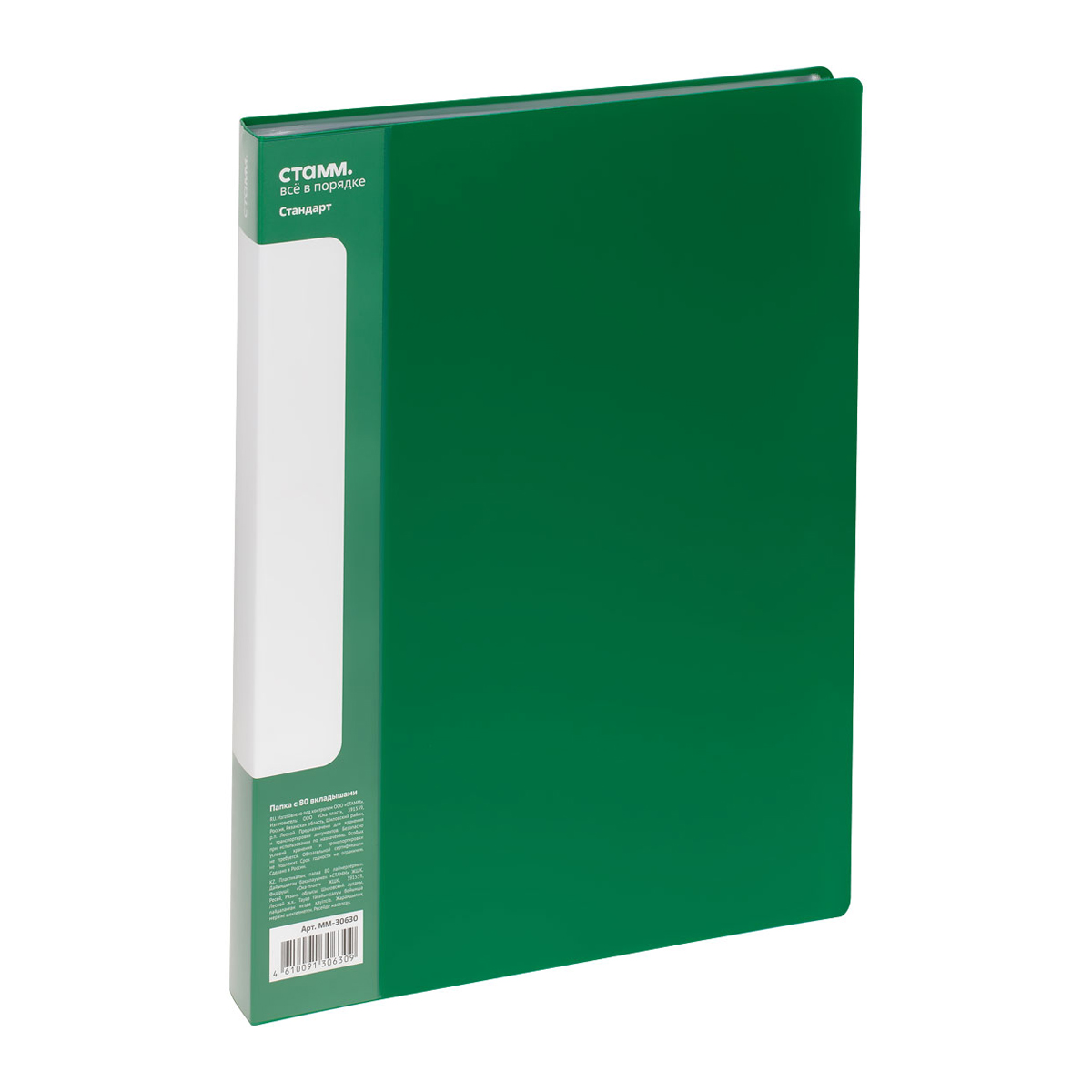 Папка с 80 вкладышами СТАММ "Стандарт" А4, 30мм, 800мкм, пластик, зеленая