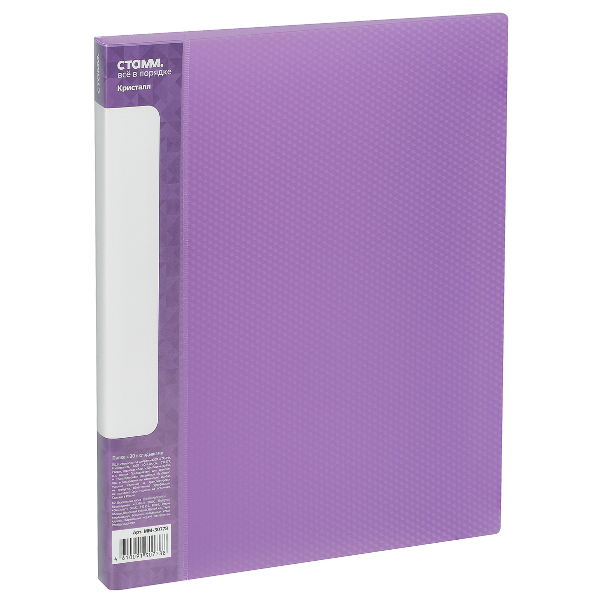 Папка с 30 вкладышами СТАММ "Кристалл" А4, 17мм, 700мкм, пластик, фиолетовая