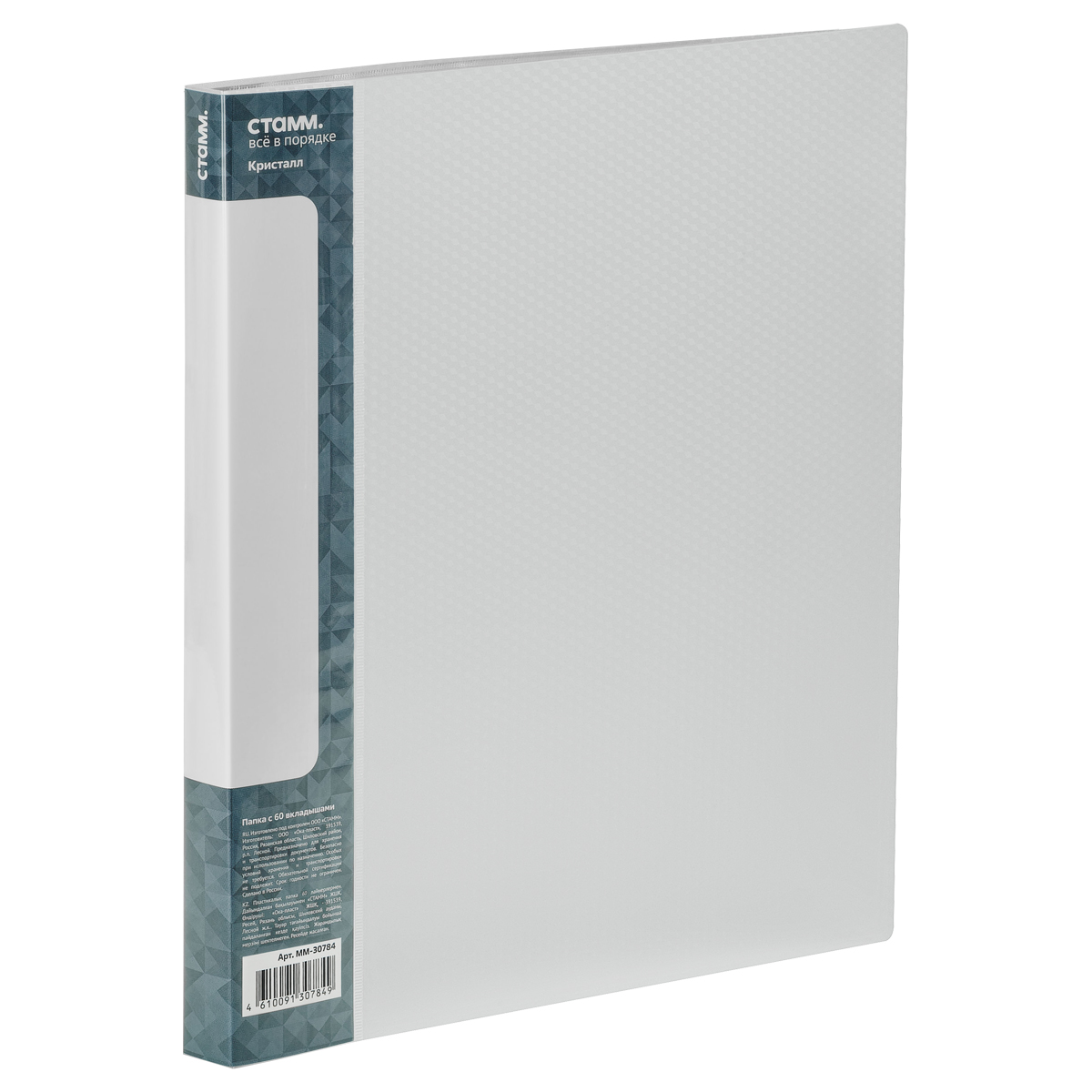 Папка с 60 вкладышами СТАММ "Кристалл" А4, 21мм, 700мкм, пластик, бесцветная
