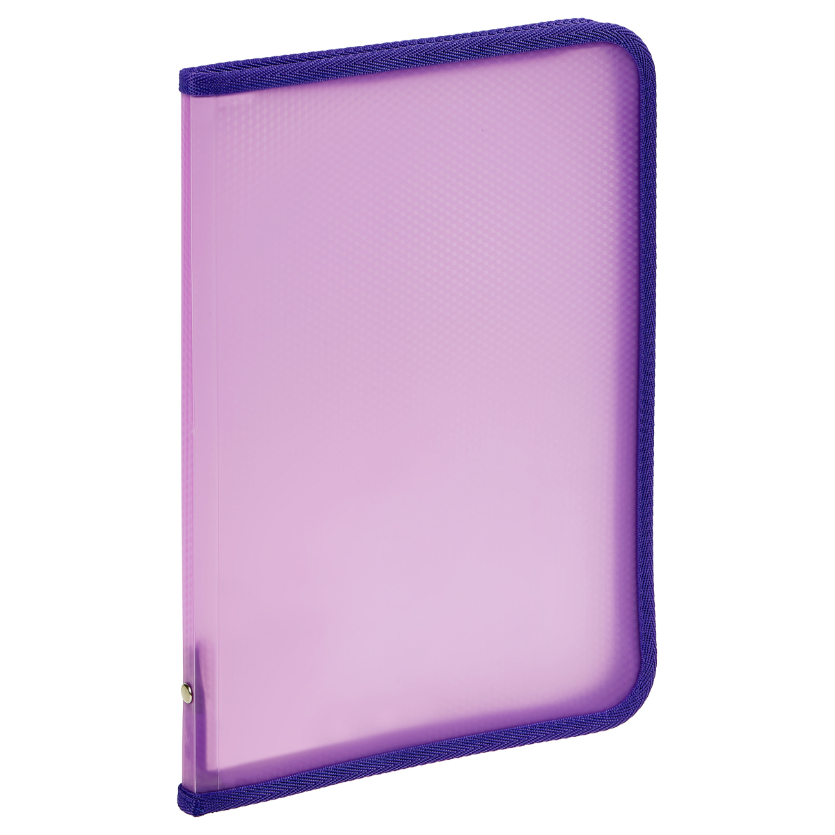Папка на молнии СТАММ "Кристалл" А4, 500мкм, пластик, молния вокруг, фиолетовая